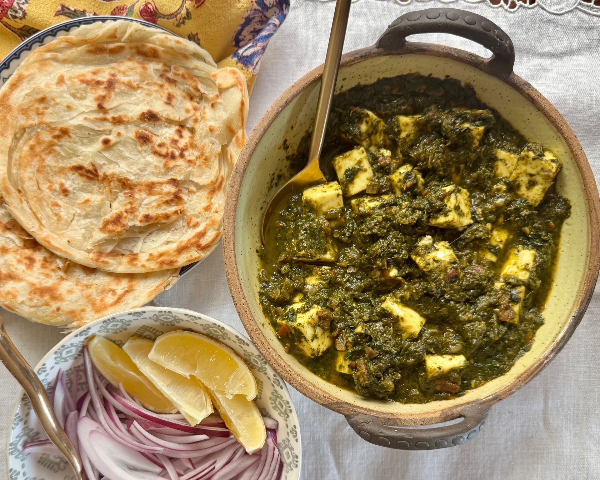 This month, I’m returning to one of my favorite winter comforts: Palak Paneer, made slowly and thoughtfully, and gently spiced with my Kashmiri and Garam masalas.